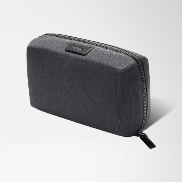 The generously sized Bellroy Tech kit makes it easy to organize your tech accessories without tangles. The case zips open and lies flat for easy access. The signature stretch-mesh pockets and elastic cable organizers keep things in place. The magnetic slip pocket can fit a power bank to keep you charged up on the go. The case is made from recycled woven fabric. Accessories are not included.